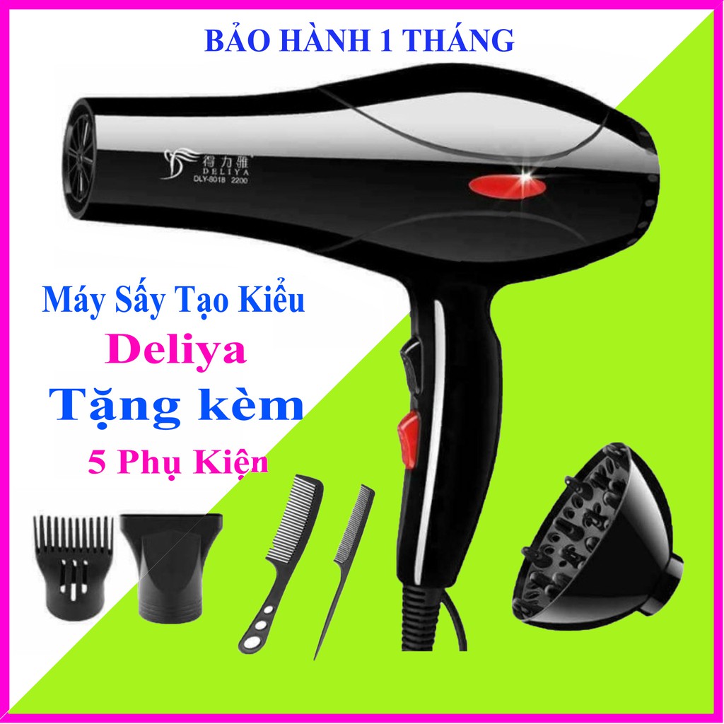 Máy Sấy Tóc Tạo Kiểu Deliya Công Suất Lớn 2200W Tặng Kèm Bộ 5 Phụ Kiện free ship